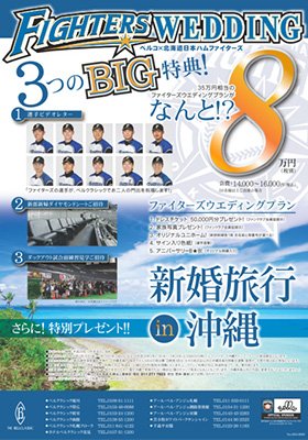 | 抽選会賞品 | 特賞 ・・・Fighters Wedding 10組 A賞・・・ファイターズ選手直筆サイン入りグッズ 5名様 B賞・・・観戦ペアチケット 5組10名様 ※応募資格:2年以内に本人またはご家族が北海道内のベルコグループにて挙式される予定の方 ※応募方法:当日1回裏終了までに北ゲート2前 ベルコ特設ブースにてご応募ください ※開場~1回裏終了まで |