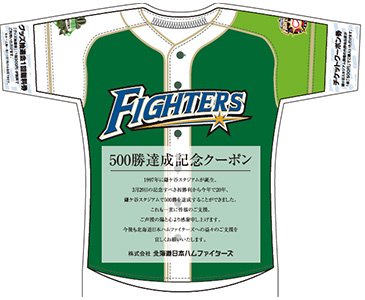1997年3月にファイターズ鎌ケ谷スタジアムが誕生して20年。そして、これまで多くのファンの皆様の声援に支えられながら鎌スタで積み上げた勝ち星は497勝。今回は500勝分の感謝の意を込めて、ホーム通算500勝を達成した試合にて、観戦記念にもなるホーム500勝達成記念クーポンをご来場の皆様全員にプレゼントいたします。
