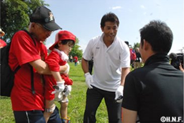 ホクレンと北海道日本ハムファイターズは、北海道の「美しい自然」と「キレイな水」を守る環境活動に共同で取り組んでいます。その活動の1つとして、「頑張れファイターズ!!無洗米ななつぼし」の売上の一部(1kgあたり1円)を活動費用として積み立て、北海道内の河川敷・海岸などを清掃する活動『キープ!クリーンウォーターエコプロジェクト』を毎年実施しています。