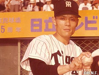 1934年兵庫県明石市生まれ。1953年に大阪タイガースに入団。その後東京オリオンズ、ロッテオリオンズ、大洋ホエールズと渡り、1972年現役引退。通算320勝をあげ、最多勝、最高勝率、最多奪三振をそれぞれ獲得。最高勝率、最多奪三振を獲得した1962年には27勝をあげセ・リーグ優勝に導き沢村賞を獲得。2001年に野球殿堂競技者表彰を受ける。