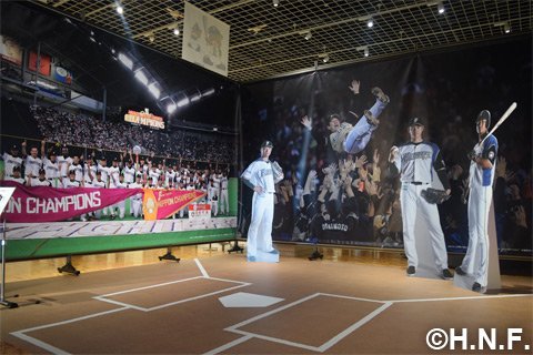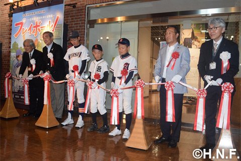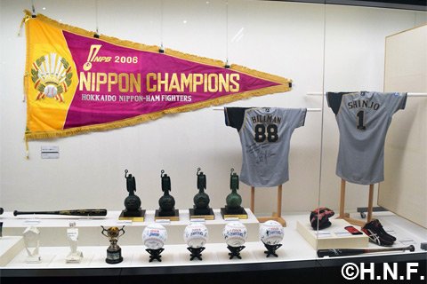 少年野球から高校野球、社会人野球、プロ野球を網羅した北海道内初の大規模な企画展「プレイボール!-北海道と野球をめぐる物語-」(特別協力:北海道日本ハムファイターズ)が7月8日(土)、札幌市厚別区の北海道博物館で開幕しました。約550点にのぼる写真や優勝旗などの展示物で北海道の野球のあゆみを紹介するもので、北海道日本ハムファイターズ関連では2006年と2016年の日本シリーズ優勝ペナントやトレイ・ヒルマン元監督、新庄剛志、稲葉篤紀両氏らの実使用アイテム、球団所蔵の記念球などが展示されています。