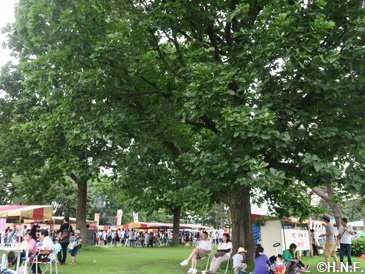 芽室駅からほど近い芽室公園(今回のキャラバン会場)も20haという広さで、一面に広がる芝生の中に樹齢200年以上の柏の大木も。そして今の季節が一番美しいという2.7haの敷地に2万5千株の花菖蒲(ハナショウブ)も芽室公園の名物でしたが、昨年8月の台風による豪雨でほとんどが流されてしまったそうです。復興にはかなりの年数が必要とのことで・・・。