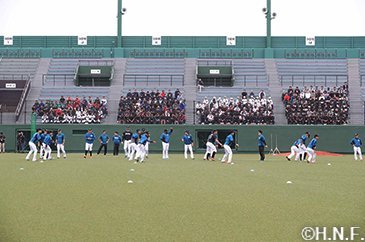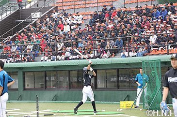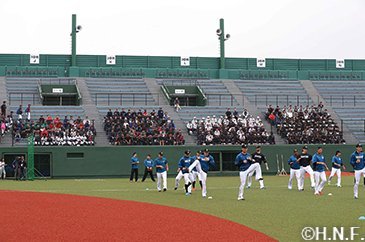 翌日の7月26日(水)の同戦でも帯広市を含む近郊から約40人が、同じように試合前から練習見学に訪れます。北海道野球協議会を通じて参加希望者を募り、地方開催では函館での7月18日(火)の東北楽天イーグルス戦で約60人が参加しました。8月29日(火)から旭川で行われる福岡ソフトバンクホークスとの2連戦でも、同様に実施いたします。