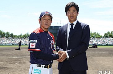 ファイターズの選手となって初めて訪れたのが、帯広の森野球場。帯広大谷高校出身の杉浦投手にとっては、地元であり思い出の地です。緊張感よりも高揚感を漂わせる入団会見となりました。「『帰ってきた』という思いはある。ファイターズは北海道に根付いているので、自分もその一員として北海道に貢献したい」。野球少年時代にはファイターズの試合をテレビ観戦していたといいます。右肩のケガもあり、ゲームでの登板は控えている状況ですが、「今年中には投げたいと思っている。(家族も)一軍で投げれば見に来やすい」と力を込めました。球場では、練習を終えた首脳陣や選手とも初対面。なかでも大学の先輩にあたる矢野謙次選手から声をかけられると、頬が緩みました。スケールの大きさは折り紙つき。背番号は「57」。生まれ故郷にある新天地での飛躍が期待されます。