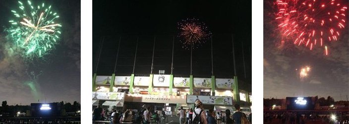 昨年、鎌ケ谷青年会議所の創立40周年を記念して初めて鎌スタで開催し、ご好評いただいた<かまがやの花火>が今年も鎌スタで開催されます。鎌ケ谷市内の小学校9校の児童たちがデザインした1,100発の大型花火が鎌スタの夜空を彩り、球場正面広場では地元商店会からの出店や縁日が勢ぞろい。