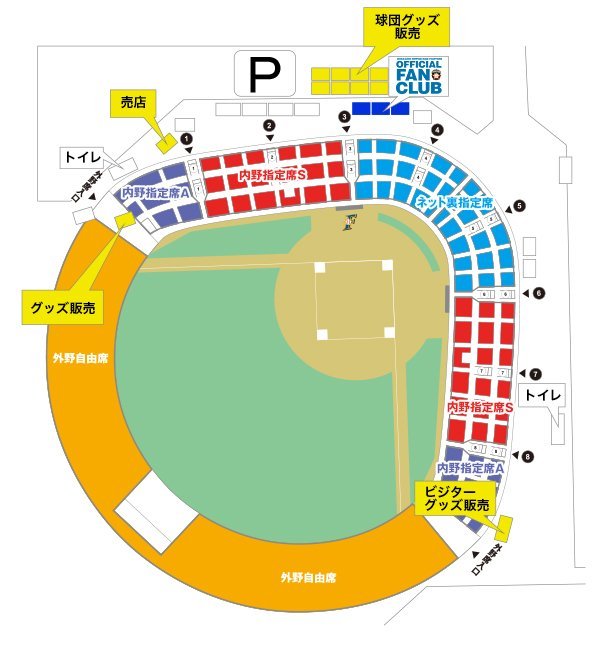 一塁側駐車場(14:00~試合終了30分程度)