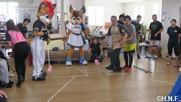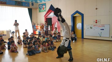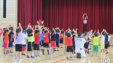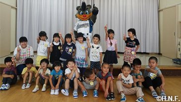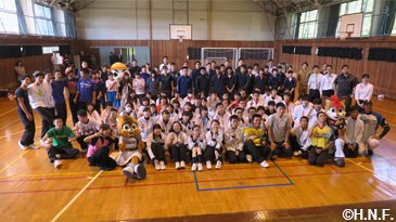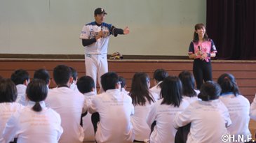 今回もベースボールアカデミーコーチ、ダンスアカデミー坂野インストラクター、B・B、ポリー、フレップ、ファイターズガールが訪問。訪問した小・中・高校では牧谷アカデミーコーチが夢を持つ大切さを講話し、幼稚園ではB・Bがピアノ演奏や逆立ちで子供たちを驚かせ、キャラバン会場ではファイターズガールが弾けるダンスで盛り上げ、さらに今回のキャラバンでは特別ゲスト“とにかく明るい安村”さんが登場。笑顔の交流は、底抜けに明るい交流になりました。