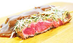 北海道産牛を40日間ドライエイジングした本物の「熟成牛」牛カツです。柔らかさと熟成香を楽しめます。