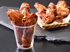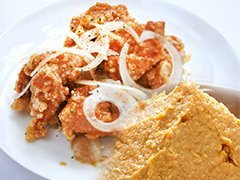「ナイスザンギ」はオーソドックスなしょうゆ、しょうが、にんにくなどのタレに漬けた、いつものザンギの味です。揚げたてアツアツ、かじるとカリッ、肉汁がじわり。期待を裏切らないザンギです。
