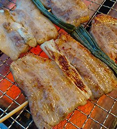 地元かみふらのポークを使用、豚串、豚ジンギスカンを販売。やわらかく旨味たっぷりポークです。