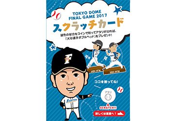 大谷翔平選手二刀流ボブルヘッド(投手バージョンまたは打者バージョン)が当たるスクラッチカードを6,000名様にプレゼント!スクラッチカードを受取ったらコインで削って運試し!当たりマークが出たら開場から7回表終了までに引換えよう!