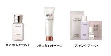 ご参加いただいた方には、メイク落とし1回分、化粧水20mL、美容オイル”高品位「スクワラン」”4mL、化粧下地”つるつるマットベース”サンプル1回分がセットになったスキンケアセットをプレゼント。