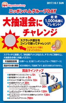| 開場7回裏終了までに北2ゲート前のニッポンハムグループ特設ブースまでお越しください。 |