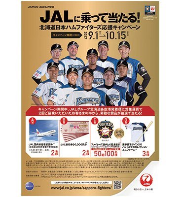 JALマイレージバンク(JMB)カード・JALカードをお持ちいただき、専用端末にタッチするだけで先着1,000名様に10マイルをプレゼント!ファイターズが勝利すると、さらに10マイルプレゼントします。