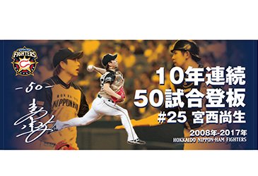 北海道日本ハムファイターズではダイジェストグッズ第31弾の受注受付を10月5日(木)12:00までオフィシャルオンラインストアで行います。第31弾は9月26日(火)のオリックス・バファローズ戦で10年連続50試合登板を達成した宮西尚生投手です。