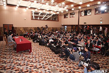 「大谷投手からMLB挑戦への申し入れがあり、球団はポスティング・システムを利用して承諾する結論に至りましたので、ご報告申し上げます。23歳とまだ若く少し早いと思われるかも知れませんが、世界オンリーワンに向かうには彼の決断、覚悟が定まった時に背中を押してあげるのが一番だと、一貫して球団では考えてきました。ファンの皆様におかれましては私どもが下した判断をご理解いただき、日本の宝として世界的な視野に立って大谷翔平を今後も応援してくださいますようお願い申し上げます。大谷投手の活躍が日本中に夢を与え、大谷投手のようになりたいと思わせる存在であり続けることを願います」