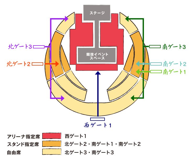 - ・アリーナ内では、アリーナ指定席をお持ちの方以外は観覧はできません。