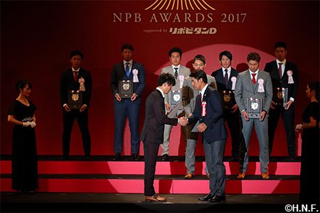 日本野球機構(NPB)の年間表彰式「NPB AWARDS 2017 supported by リポビタンD」が11月20日(月)、東京都内のホテルで行われ、北海道日本ハムファイターズから最多盗塁のタイトルを獲得しベストナインにも輝いた西川遥輝選手が出席し、表彰を受けました。