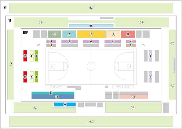 | コートサイド後列 | 8,000 | 10,000 | |||||||||