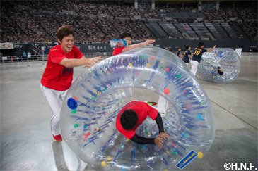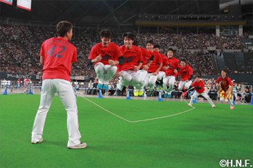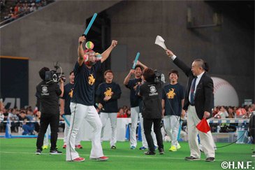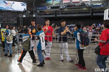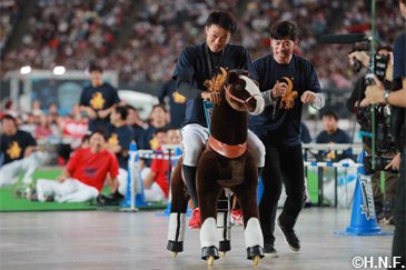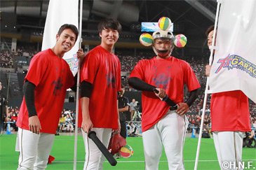 北海道日本ハムファイターズは11月26日(日)、札幌ドームで《ファンフェスティバル2017》を開催しました。今回は《GALALYMPIC~東西合戦~》と銘打ち、選手の出身地別にチーム分けをし、激しく、熱いバトルを繰り広げました。来場者は39,606人。応援団長は東軍が森本稀哲氏、西軍は建山義紀氏のOBを配し、総大将をそれぞれ鍵谷陽平投手、中島卓也選手が務め、各種ゲームで日ごろは見せない一面を披露しました。西軍が勝利を収め、中田翔選手がMVPを獲得しました。