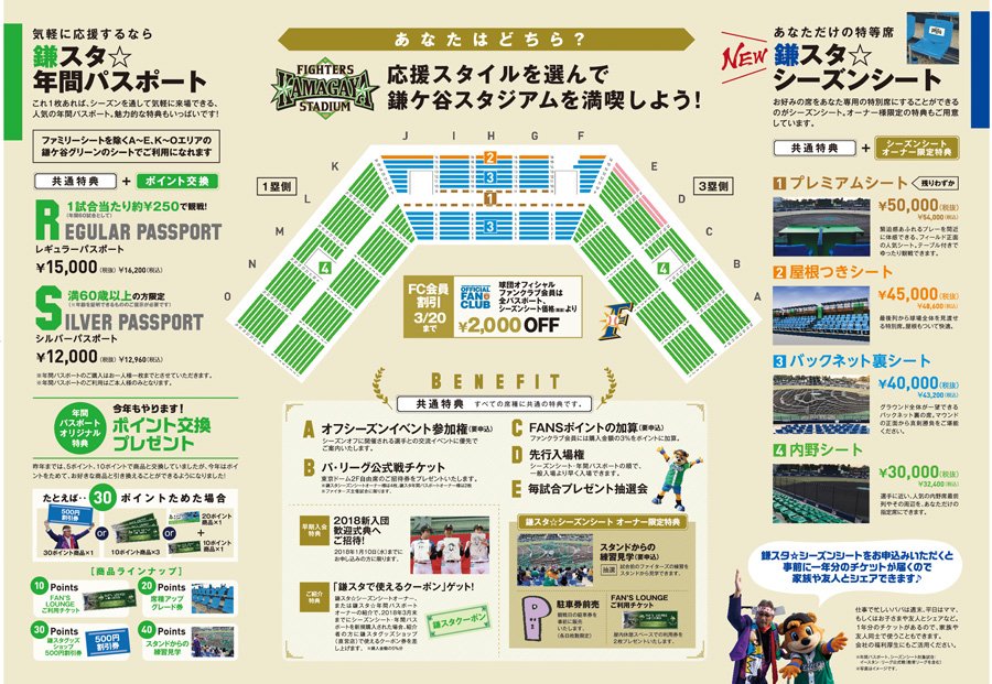北海道日本ハムファイターズでは、12月3日(日)より<鎌スタ☆年間パスポート2018>と、来シーズンより新たに登場する<鎌スタ☆シーズンシート>の受付を開始いたします。