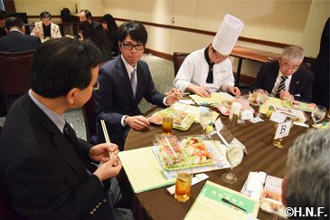 札幌市内で12月2日(土)に開催された「平成29年度札幌市お弁当プロジェクト」レシピコンテスト(主催:札幌市保健福祉局保健所、協賛:北海道日本ハムファイターズ、日本ハム北海道販売ほか)で、北海道日本ハムファイターズチーム統轄本部付の武田勝(ルートインBCリーグ・石川ミリオンスターズヴァイスプレジデント兼総合コーチ)が審査員を務めました。1次審査を通過した「一般の部」6作品を試食審査し、特別賞のレシピを考案した一般の部、中高生の部それぞれお一人に「ファイターズ賞」を授与しました。