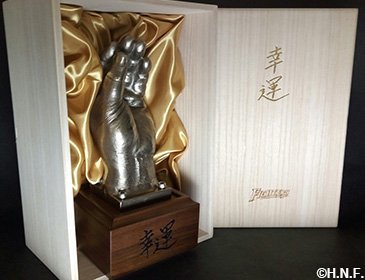 『木田GM補佐黄金の左手像』は木田GM補佐の左手を石膏で型をとり、1/1スケールで製作した非売品です。さらに、選手の直筆サイン入りボールや3月30日(金)から開催される「OPENING GAMES」のペアチケットが当たりますので、新年の運試しにお買い求めください!!