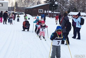 京極町リフレッシュパークで開かれた「幼児クロスカントリースキー教室」には男女33名が参加しました。当日は京極町クロスカントリースキー少年団の子供たちも手伝い、はじめて体験する子どもたちの前で滑る姿を披露しました。またB☆Bも参加し、未経験の子どもたちと楽しくコースを滑り、子どもたちは細いスキーを上手に前後させながら、最後には全員が一人で滑れるようになりました。代表の船場英雄さんから楽しかったですか?という問いかけに、子どもたちからは元気よく「楽しかった」「またやりたい」との声が上がっていました。