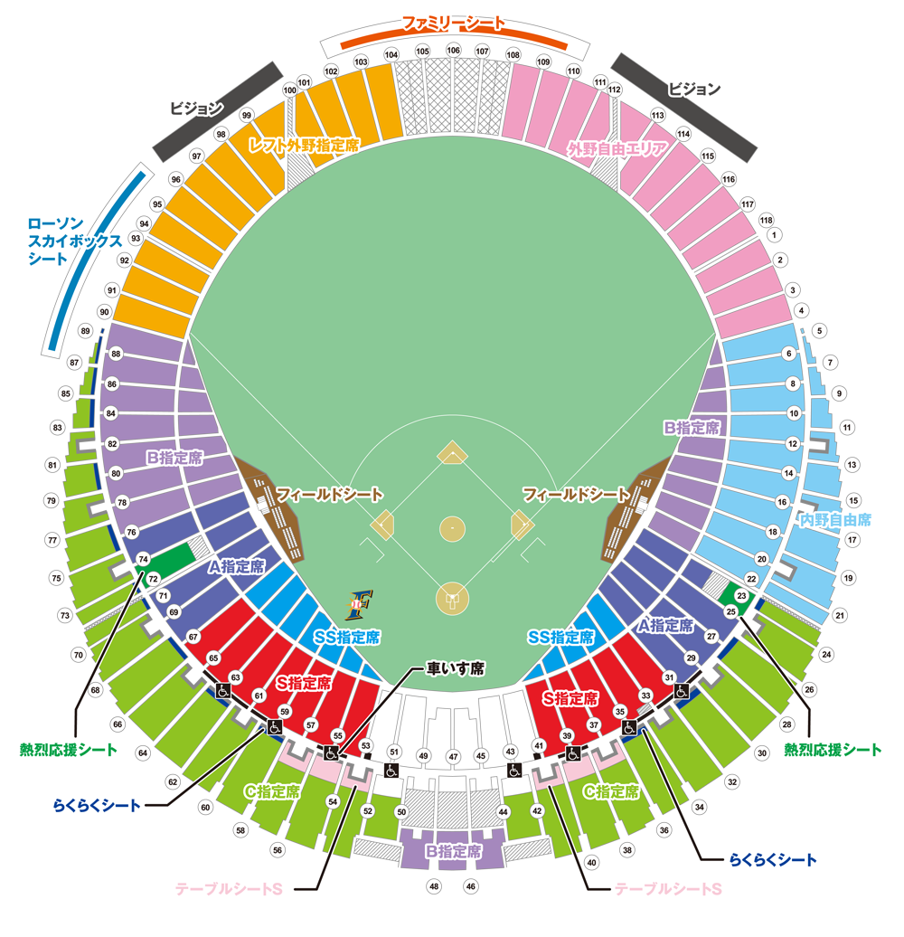 | 引換 方法 | Lamigoモンキーズ戦の試合当日、札幌ドーム南北連絡通路西棟会議室へチケット(QR入場券)をお持ちのうえ、開幕戦ペア観戦チケットをお受け取りください。 ※開幕戦(3/30(金))C指定席の塁側・お座席位置は選べません。 | |||