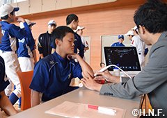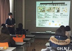 北翔大の黒田裕太講師による食育講座では、ファイターズ選手の実際の食事メニューを示しながら、トレーニング後に炭水化物とタンパク質を摂取することが重要であると説明。本協定では6月に開催される30キロロードレースに連動したイベントを計画していて、その他にも球団職員によるキャリア教育や体育授業も行っていく予定です。