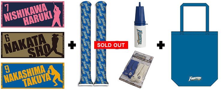 初めての球場観戦もこれでバッチリ!ファイターズを応援するマストアイテム「オリジナル選手タオル」、「チアスティック」、「ファイターズロケット風船」、「ロケット風船用ハンドポンプ」の4アイテムがオリジナルトートバッグに入った「ビギナーズパック」が観戦チケット付きで登場!「オリジナル選手タオル」は中田選手・西川選手・中島選手の3種類からランダムで1選手が入っています。ここでしか手に入らないレアグッズを手に入れましょう!