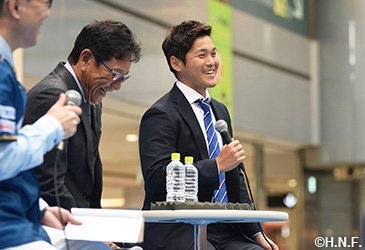 鍵谷選手も「今年は皆さんが帰る時間に近いところで投げられたら」と意欲を示し、平成30年と背番号30にちなんで「(ホールドかセーブか)どちらか分かりませんが、30以上を挙げたい」と力強く誓っていました。最後に栗山監督は「ファイターズが勝つ年は後半強いイメージがありますが、前半ある程度の位置につけられるかが鍵。球団の北海道15年目、北海道命名150年と節目にもなるので、責任を感じながら戦っていきます」と表情を引き締めていました。