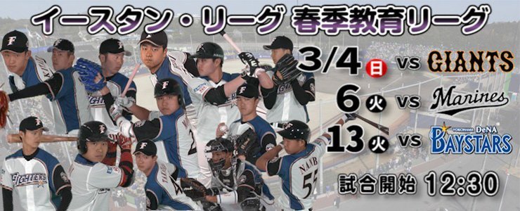 | 3月4日(日) | 12:30 | vs. ![]() | ファイターズ鎌ケ谷スタジアム | 12:00 |