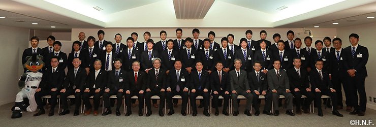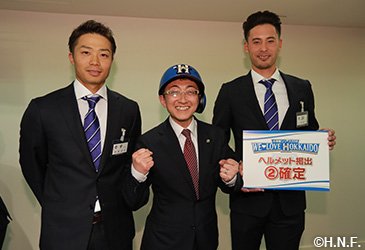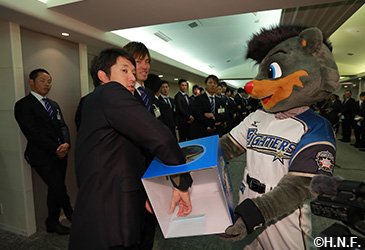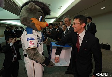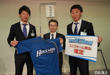 今年も決起集会にご出席された18市町村の代表者が抽選会に参加(雪のため欠席した5市町村は選手が代理抽選)。期間中に開催される札幌ドーム、東京ドームのホームゲーム10試合で、下記の抽選結果に則り市町村名入りのユニフォーム等を着用します。