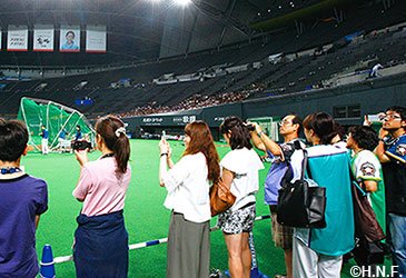 「選手サイン会」「ダッグアウト練習見学」「ドームDEツアー」のほか、キッズ会員限定の「マスコットの似顔絵を描こう!」「グラウンドキーパー体験」「勝利のハイタッチ」など、新たなイベントが盛りだくさん!選手と触れ合えるイベントもファンクラブ会員限定です。