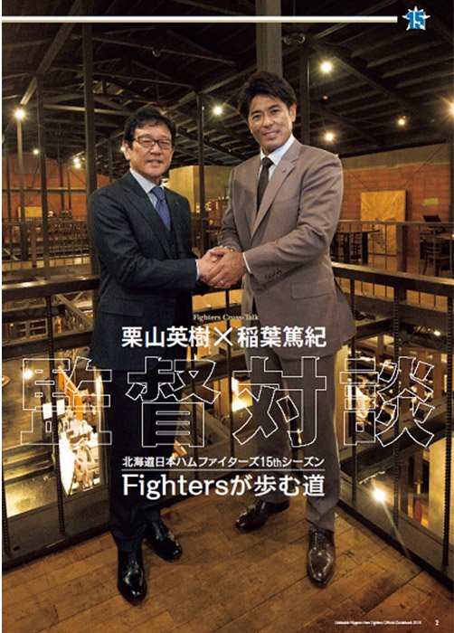 オフィシャルガイドブックならではの対談企画は、栗山英樹監督と日本代表「侍ジャパン」の稲葉篤紀監督に熱く語ってもらうほか、オフィシャルファンクラブ名誉師匠の明石家さんまさんと木田優夫GM補佐の本音トーク、東大出身の「宮台康平投手×遠藤良平GM補佐」など豪華な組み合わせが実現しました。