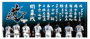 2018年3月30日(金)、埼玉西武ライオンズとの開幕戦でスターティングラインナップに名前を連ねた10選手の氏名とチームスローガンが入ったデザインとなります。