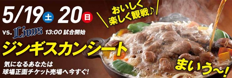 今年もやります!バックネット裏シート(指定席)にライト芝生席後方球場外周路のジンギスカンシートが付いて一般価格は18,000円(税込)。北海道名物の松尾ジンギスカンを食べながら、グループ(最大4名様まで)でゆっくりと試合観戦できるとっておきのスペシャルシートです。
