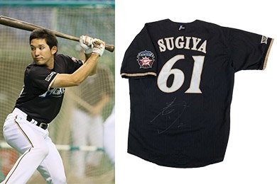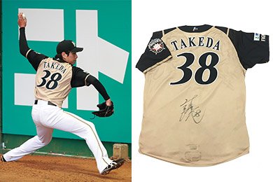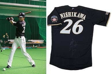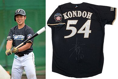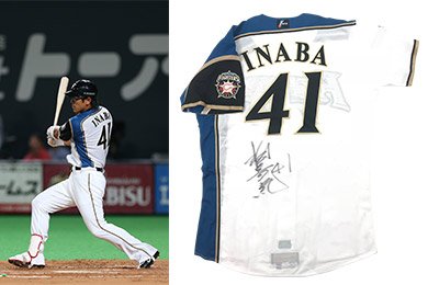 北海道日本ハムファイターズの誕生から15年目となる今年だからこそ、これまでの歴史を振り返ることの出来るレアアイテムを集めました。現侍ジャパン監督でファイターズSCOでもある稲葉篤紀、現コーチ陣からは金子誠コーチに中嶋聡コーチ、そして、石川ミリオンスターズのヴァイスプレジデント兼総合コーチ、武田勝などファイターズOBたちの現役時代のユニフォーム、そして、背番号26の西川遥輝選手、背番号54の近藤健介選手など、現在のファイターズ中心選手たちの入団間もない頃のユニフォームなど、今となっては稀少なユニフォーム10品を直筆サイン入りで揃えました。