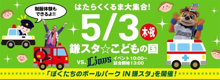 イベント開催まで1週間をきり、新たなアトラクションや出店も続々。今年のゴールデンウィークは近場の鎌スタで決まり!?ぜひ『鎌スタ☆こどもの国』へお越しください。
