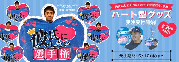 予選参加方法「彼氏にしたい選手No.1決定戦」予選開催に合わせて、全68選手対応の大小様々なハート型グッズをオフィシャルオンラインストアで受注販売いたします。対象商品1個ご購入につき、1~10票が選手へ投票されます。超巨大・ハート型ビゲストタオルはスタンドで目立つこと間違いなし!あなたはどの選手のハートを選びますか?