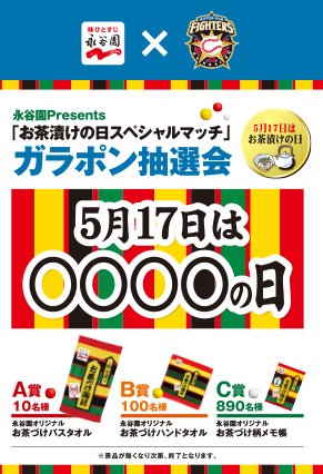 | 賞品の 引換え | 札幌ドーム北2ゲート前の永谷園ブースに9回表終了までお越しください |
