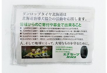 ダンロップタイヤ北海道が活動を応援している盲導犬活動の募金を実施。募金にご参加頂きました先着1,000名様にダンロップオリジナル粗品(スマホ・メガネクリーナー)をプレゼントいたします。