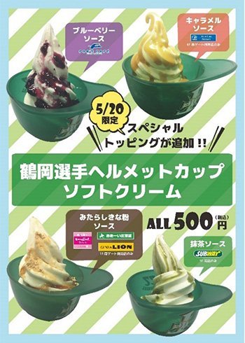 ◇鶴岡選手ヘルメットカップソフトクリーム(500円)