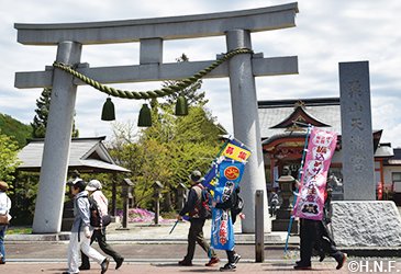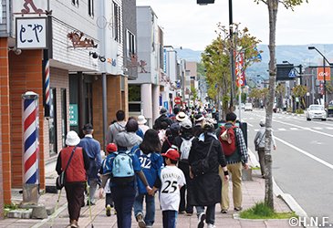 この日は国蝶オオムラサキが夏に姿を現すファーブルの森から創業140年という老舗の小林酒造、栗山駅を経由し、毎年栗山監督が初詣を欠かさない栗山天満宮の鳥居前を通過して全員が無事栗山公園に戻りました。札幌ドームを離れて行うウォーキングイベントをファイターズが共催したのは今回が初めて。栗山町では健康づくりに関わる事業への参加や健康診断受診でポイントがたまり、ギフトカードに交換できる「くりやま健康マイレージ」を導入しており、今回のご参加者には2ポイントが付与されました。