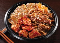今年のレアード選手タイアップ弁当は、三冠王獲得を願って3種の焼肉で表現。焼肉はご飯と相性抜群な「牛・豚・鶏」の3種類!食べ飽きない3種類のタレで、レアード選手のパワフルさをボリューム焼肉丼で表現しました。