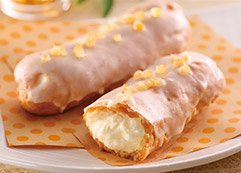 初登場 大田選手の監修商品は、出身地、広島県にちなんだ「瀬戸内産レモン」と「北海道産クリームチーズ」を使用したスイーツを発売。北海道産クリームチーズをたっぷり入れたエクレア生地をグレーズコーティングし、上面に瀬戸内産レモンピールをトッピングしました。
