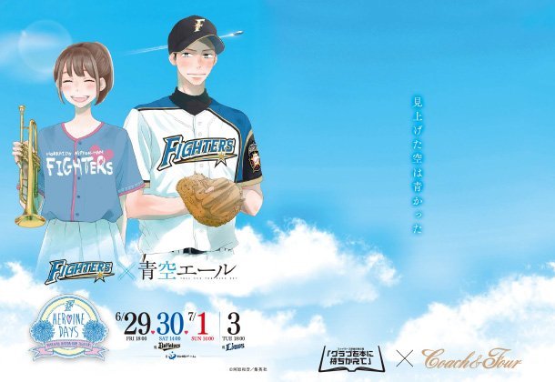 北海道日本ハムファイターズは読書促進全道キャンペーン「グラブを本に持ちかえて」を2014年から行っています。今回は《ヒロイン♡デイズ》開催をお一人でも多くの方に知っていただくと同時に書店に足を運ぶ動機につながってほしいと考え、『青空エール』のヒロイン小野つばさと山田大介がファイターズバージョンで描かれたオリジナルブックカバーを、コーチャンフォーグループ各店で文庫本を購入した際に配布いたします。なお、店舗により配布数量が異なりますのであらかじめご了承ください。