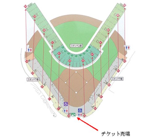当日券をご購入の方は試合当日10:00~7回終了まで、チケット売場をご利用ください。
