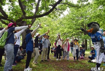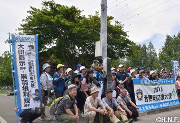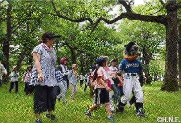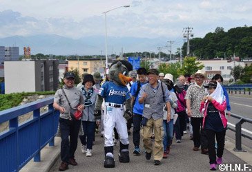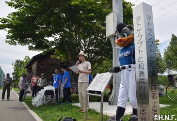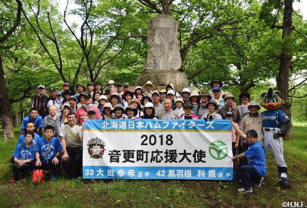 北海道日本ハムファイターズは「北海道150年パートナー事業」と「北海道179市町村応援大使プロジェクト」の連動企画として、6月30日(土)に大田泰示、黒羽根利規両選手が応援大使を務める音更町で「北海道の名づけ親」とされる幕末の探検家・松浦武四郎の足跡をたどるウォーキングイベントを開催しました。